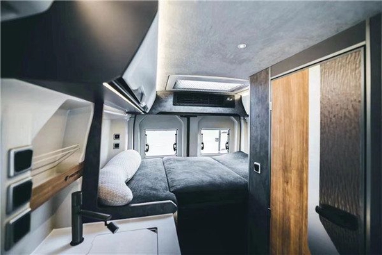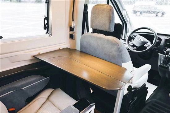 该车功能区域的划分更是科学人性,前区驾驶室视野宽阔舒适,中部会客厅就餐会客宽敞个性,厨房区域更显品质,冰箱、微波炉、电陶炉、碗柜一应俱全。后部可选装装载重机车装载系统,携带机车、滑雪板、电动助力车等大玩具更方便。