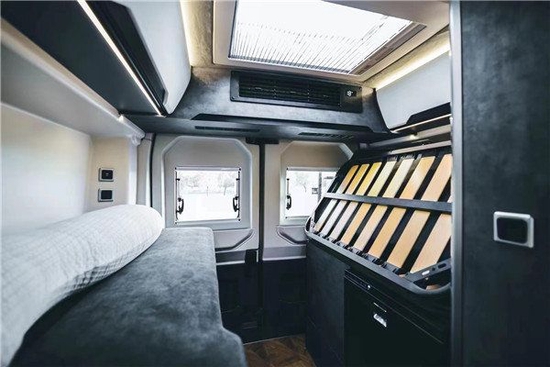 该车功能区域的划分更是科学人性,前区驾驶室视野宽阔舒适,中部会客厅就餐会客宽敞个性,厨房区域更显品质,冰箱、微波炉、电陶炉、碗柜一应俱全。后部可选装装载重机车装载系统,携带机车、滑雪板、电动助力车等大玩具更方便。